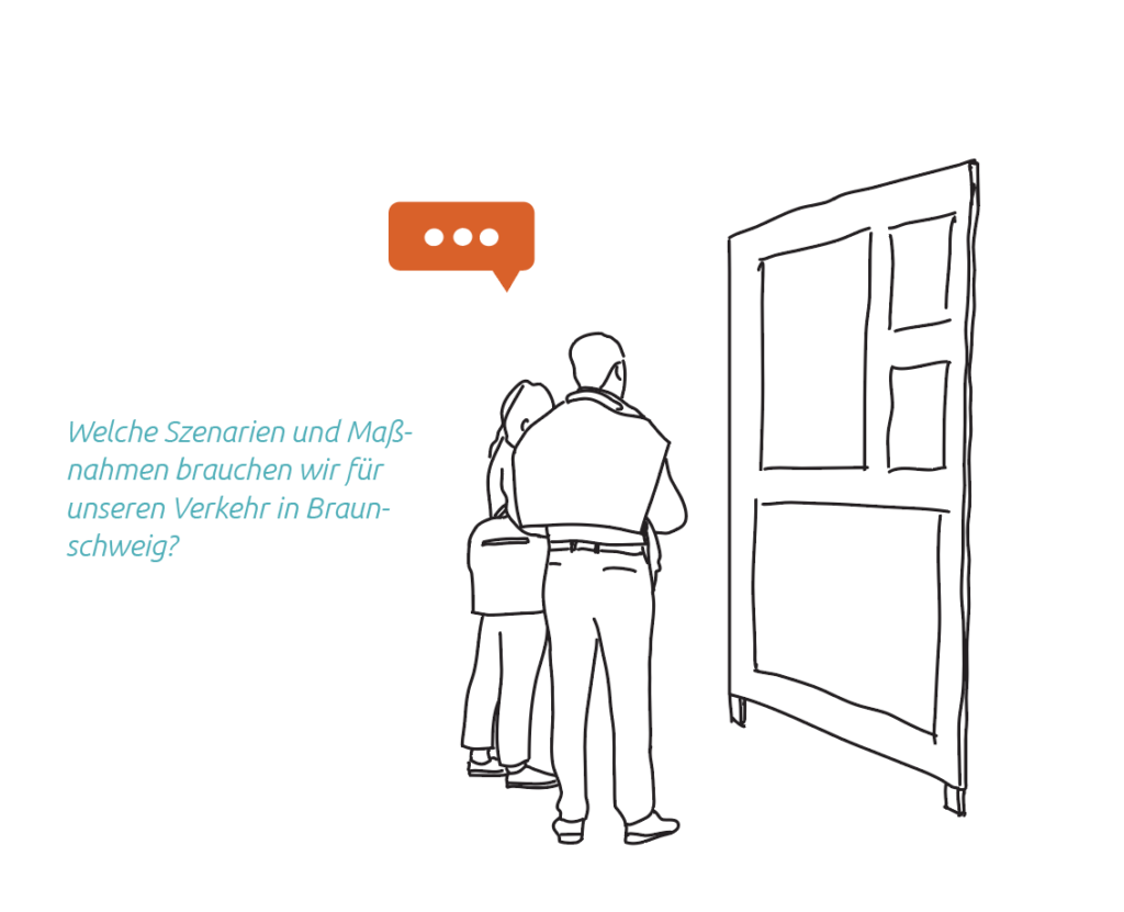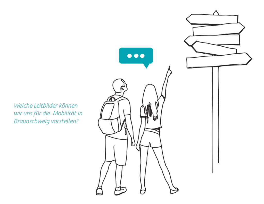Auf Grundlage der Analyse werden erste mögliche Leitbilder (Vorstadium zum Szenario) erarbeitet. Diese Leitbilder haben noch keinen Anspruch auf Vollständigkeit, sondern zeigen mögliche Stoßrichtungen auf, in die sich die Mobilität in Braunschweig entwickeln könnte. Die Zukunftserzählungen findet ihr >>>hier<<<.